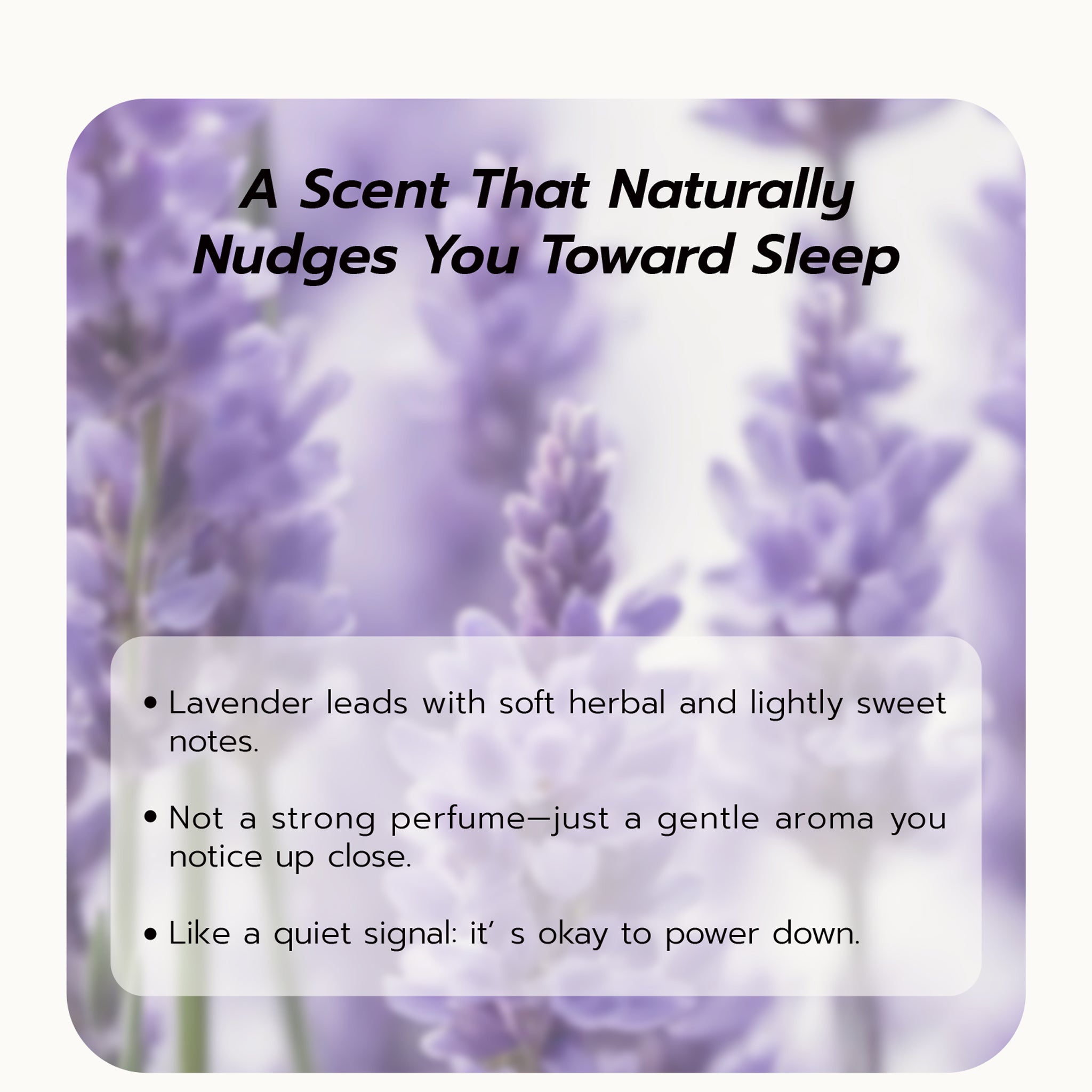 lavender oil, geranium oil, sandalwood oil, rose oil, and other natural ingredients
